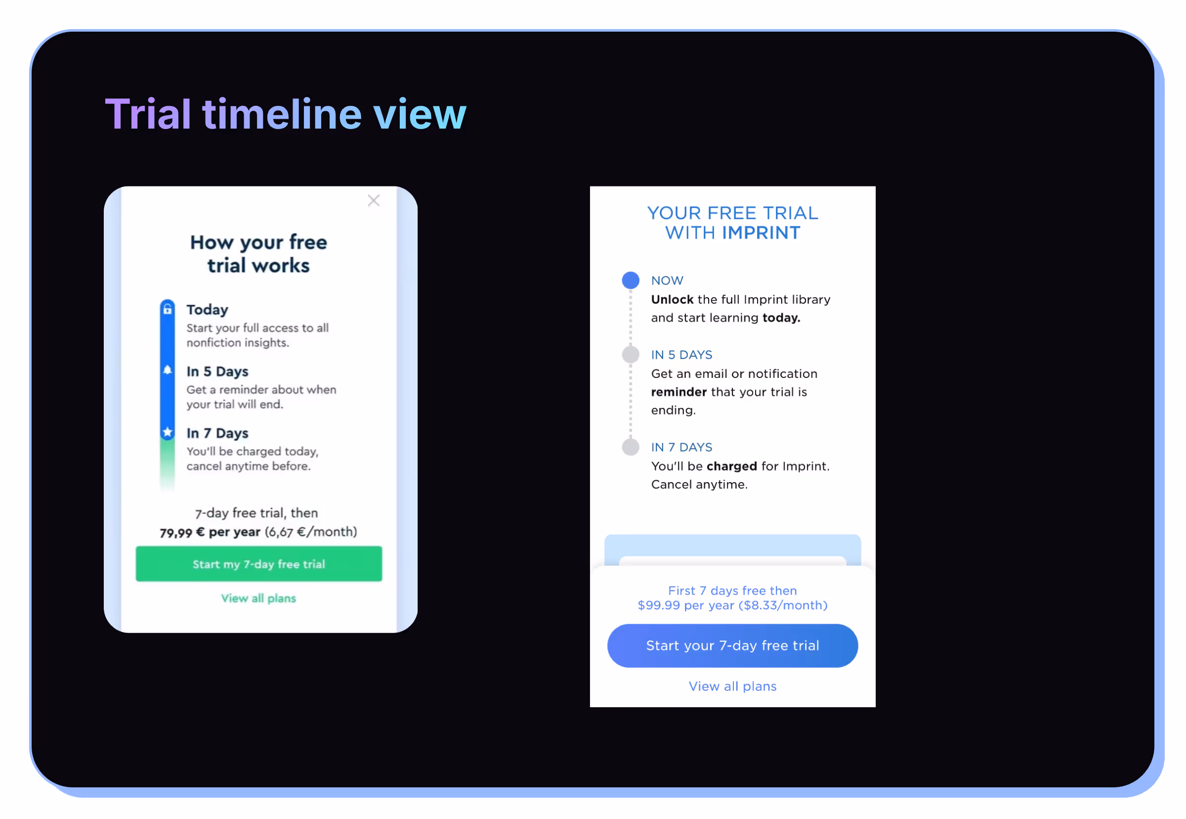 You can trial this trial timeline UI with or without the trial reminder.