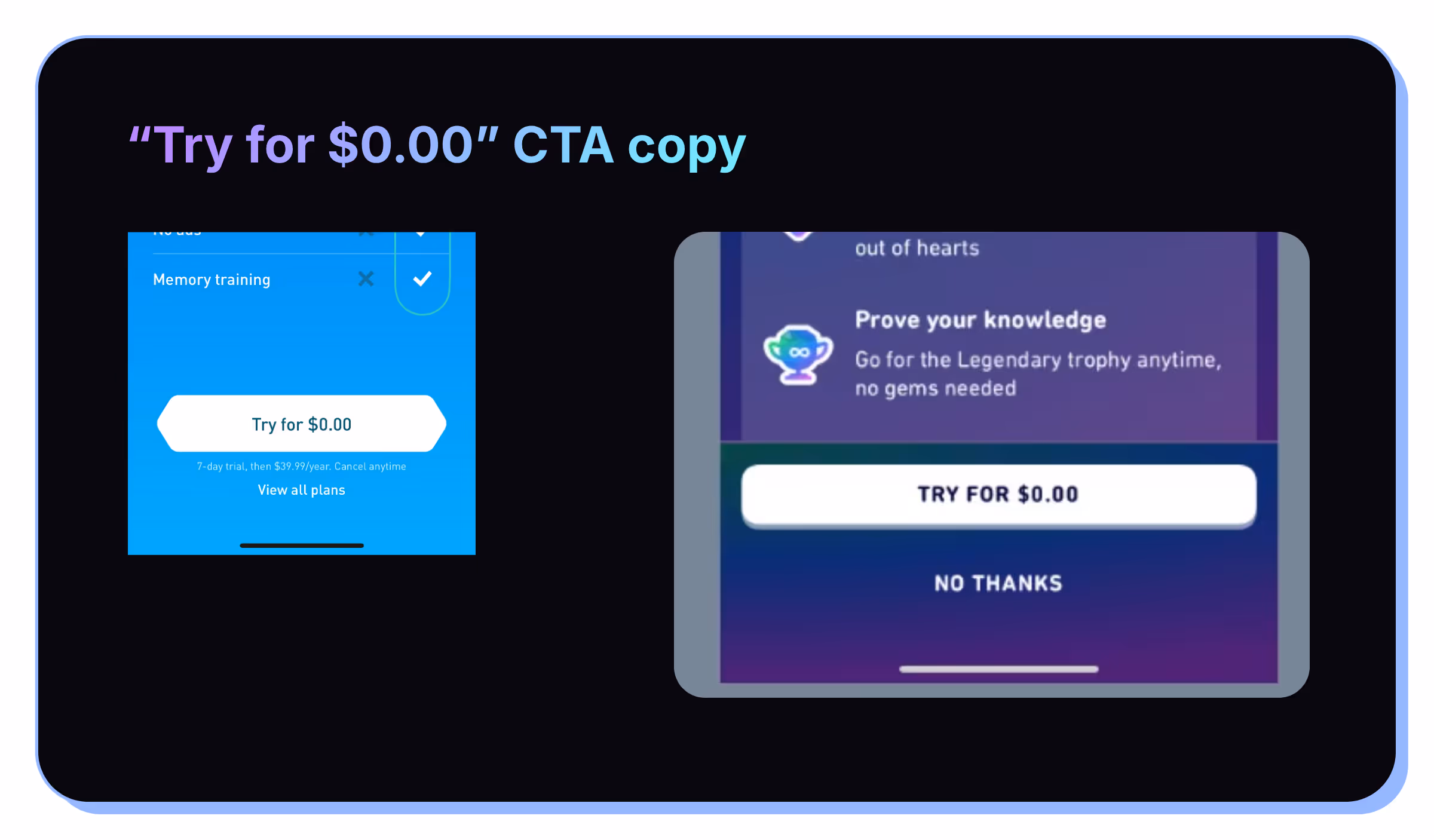 - “Try for $0.00” CTA copy