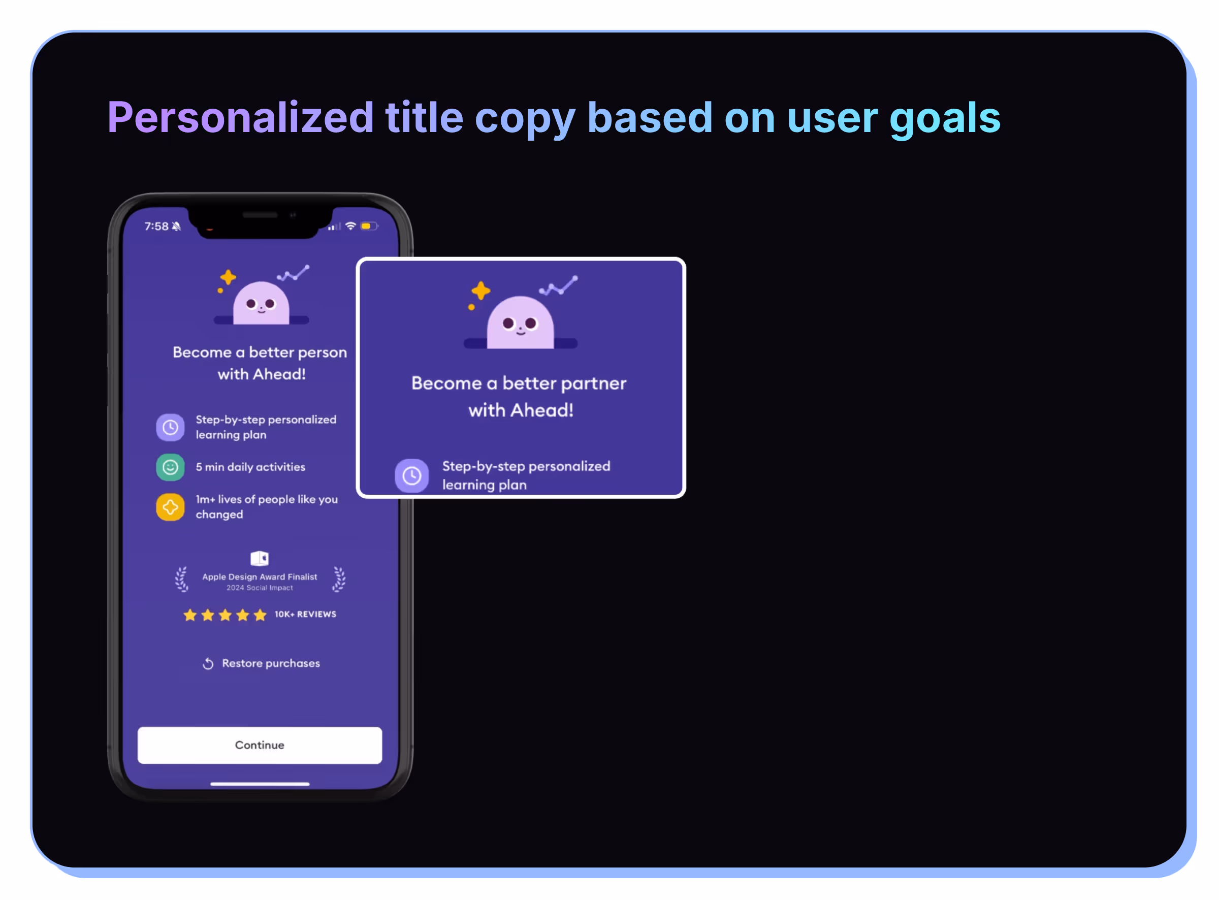 - Personalized title copy based on user goals