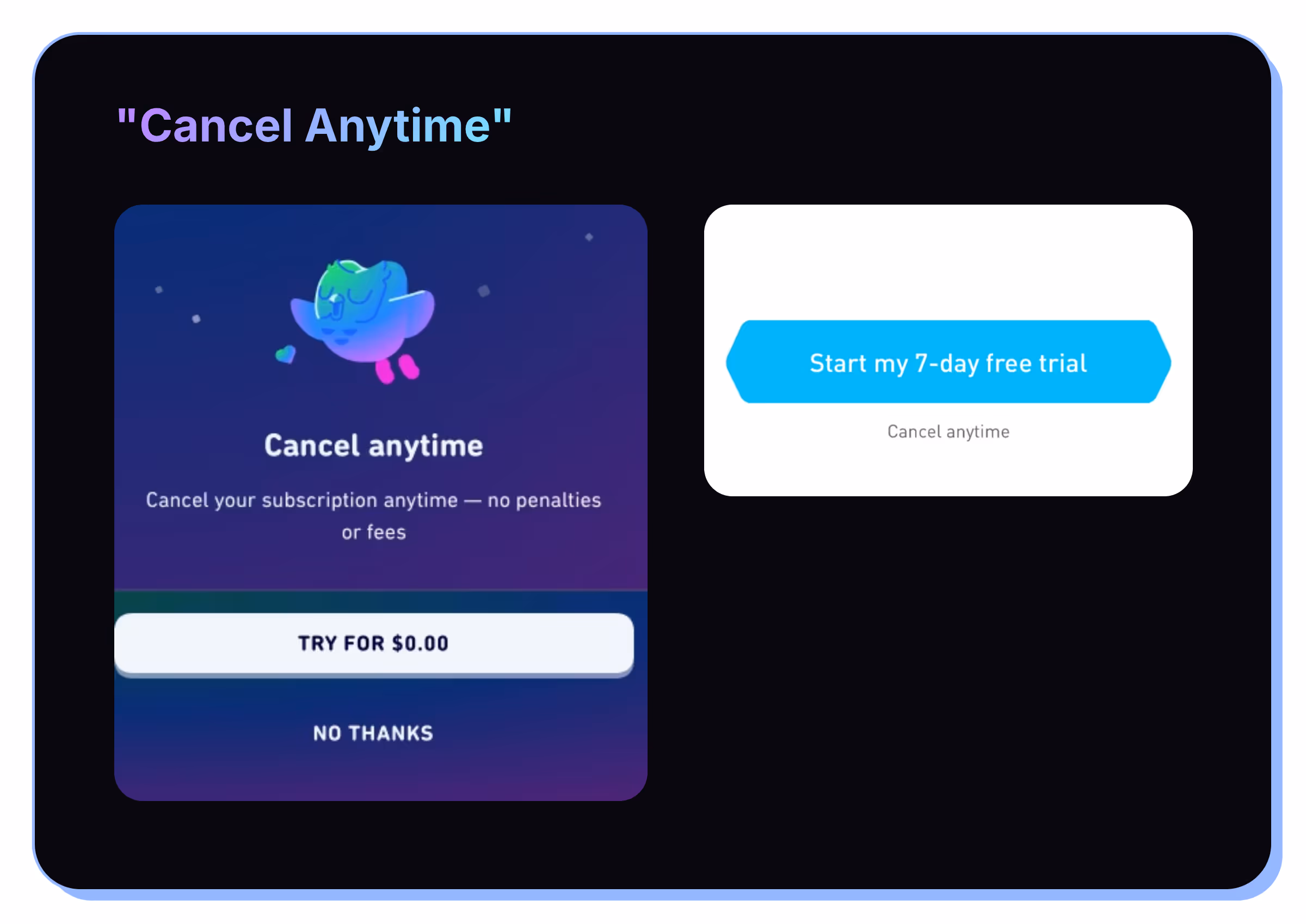 - “Cancel anytime”