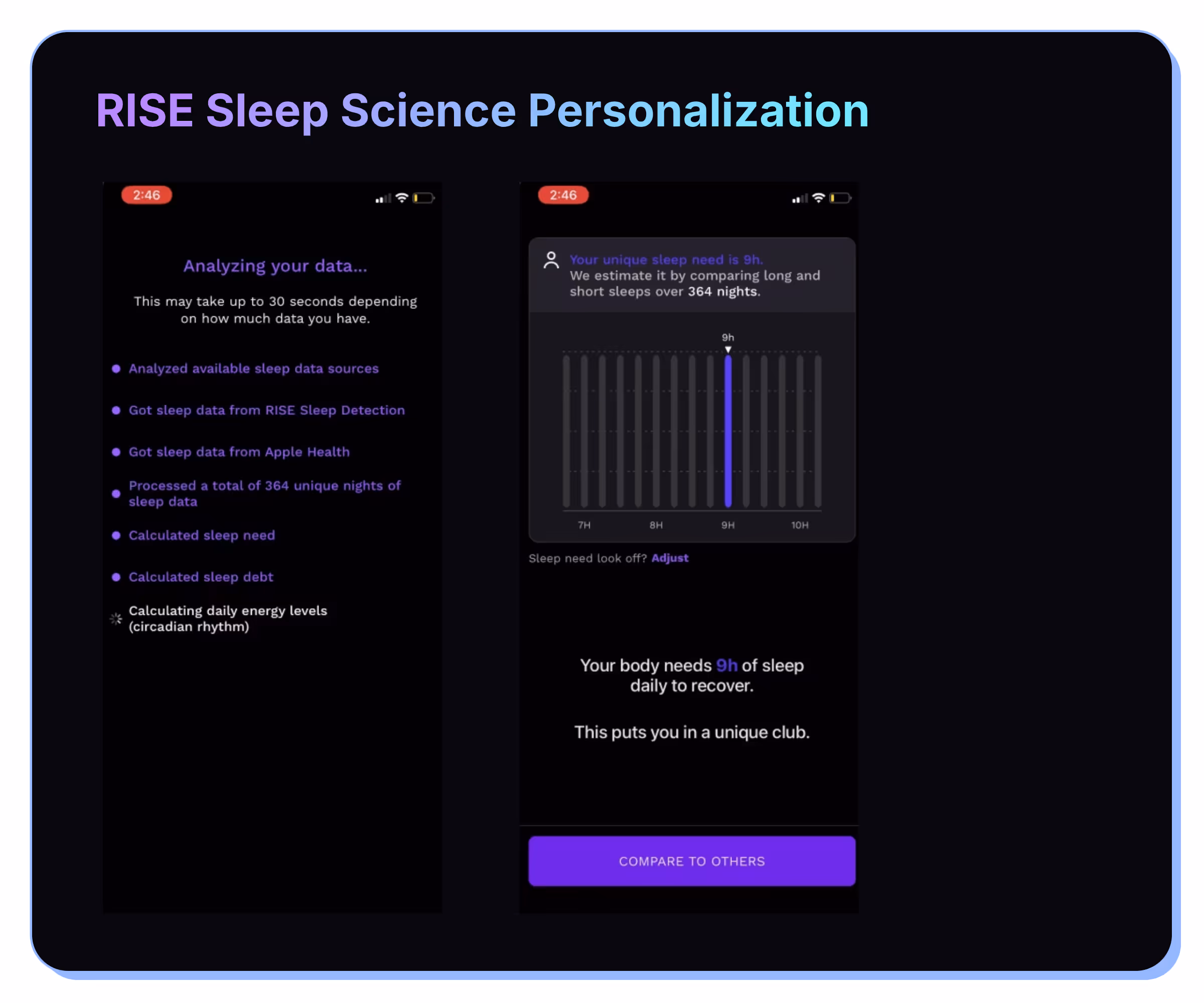 RISE Sleep Science creates real personalization by pulling in data from Apple Health. They analyze your past sleep data to figure out your sleep debt.