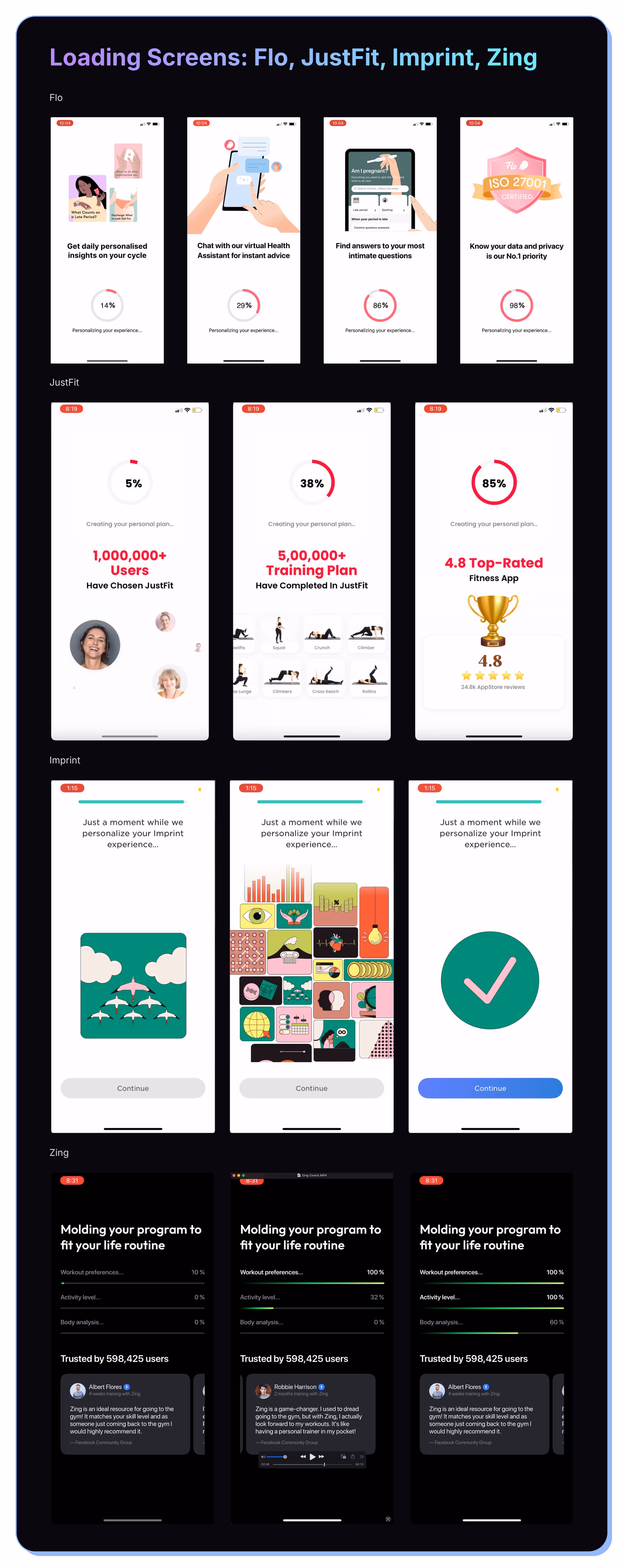 Loading screens provide an opportunity for you to reiterate the features and value, show social proof, and reinforce personalization.