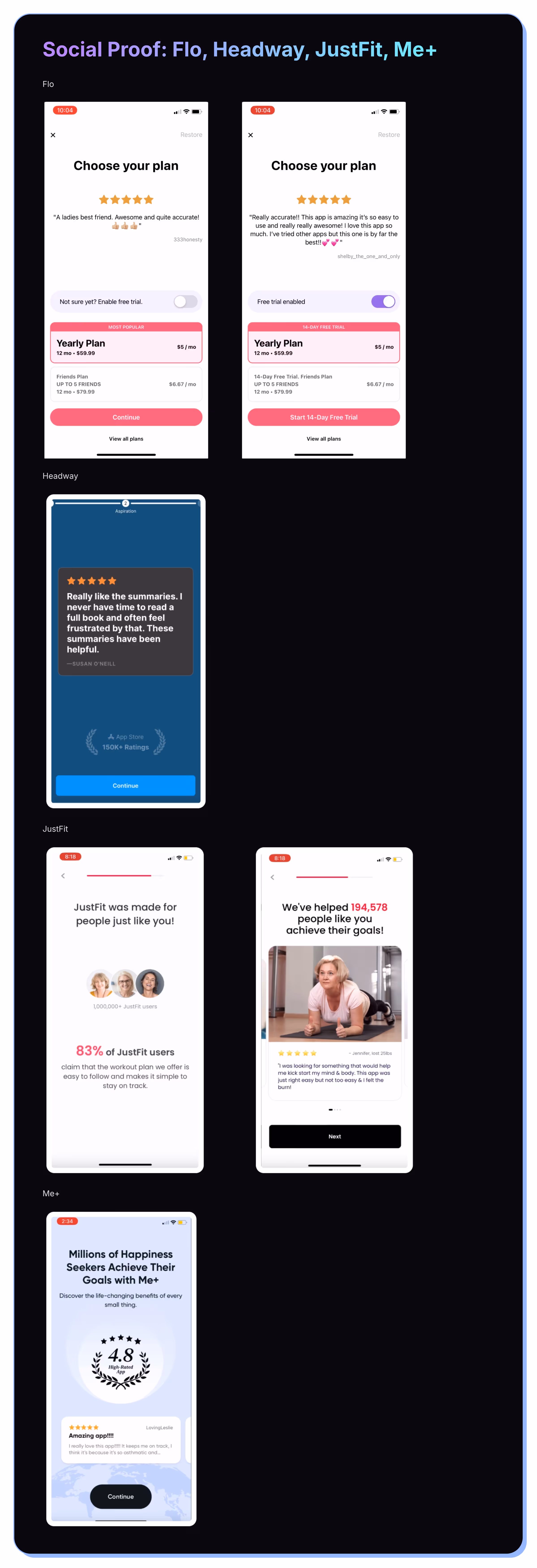 - JustFit introduces social proof into its flow as well.