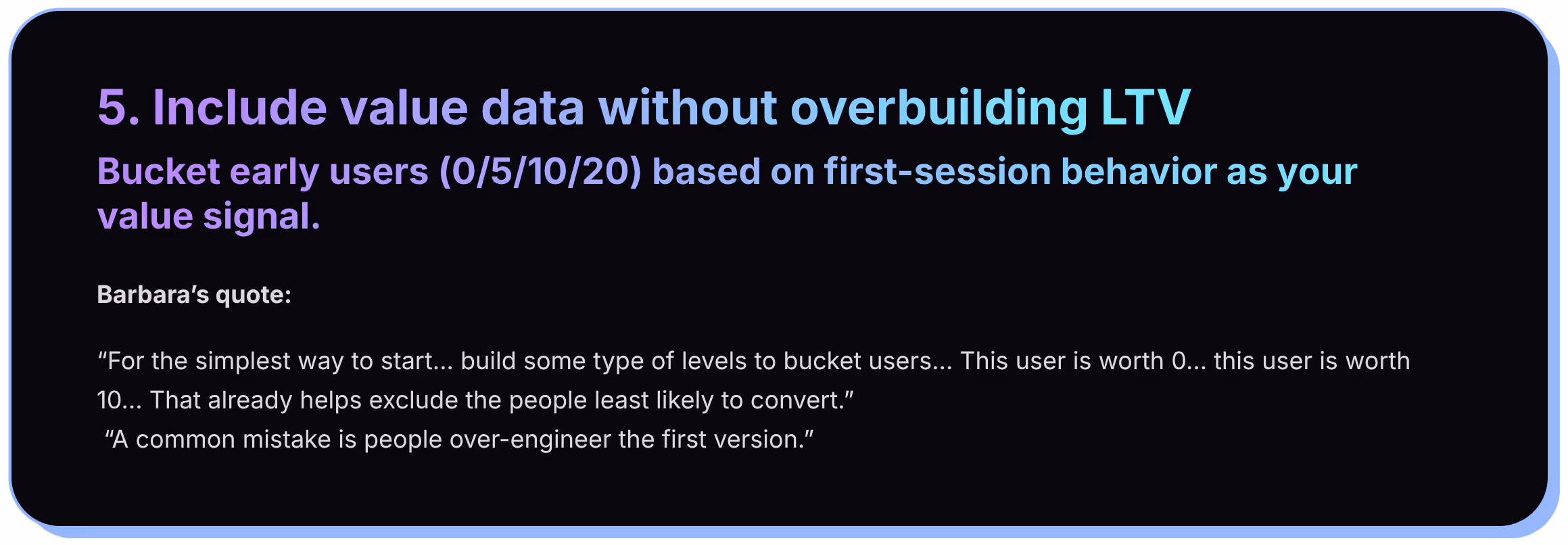 Without value signals, Meta finds CPI arbitrage — teenagers, price-sensitive regions, converters with low intent. This is why subscription apps especially need at least simple value scoring.